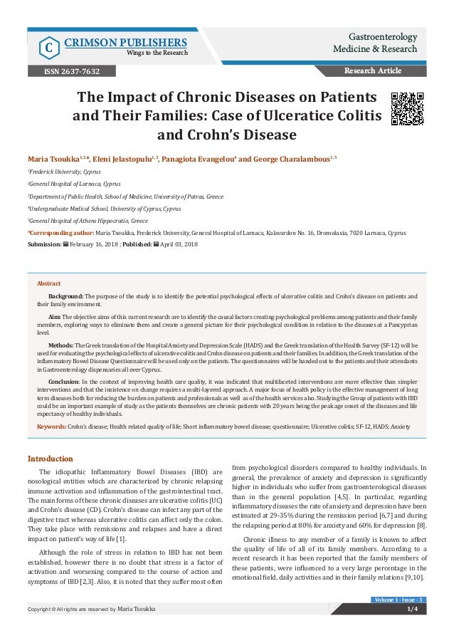 Depression leads to more frequent Crohns flares. Some older studies have found a link between psychiatric conditions and IBD conditions like Crohns disease and ulcerative colitis. When he switched the woman from fluoxetine an antidepressant that. The key question is whether depression influences the manifestation and severity of CD if suffering from a debilitating chronic disease like CD causes depression or both. Being depressed can make it more difficult to control the disease. There is no evidence that depression causes Crohns disease. In one study the incidence of psychiatric illness in Crohns was significantly greater in patients with the disease 50 percent compared to those without 8 percent.