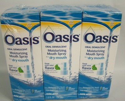 Thank you Oasis for my year supply of Oasis Moisturizing Mouthwash and Moisturizing Mouth Spray. Saliva Substitute Solution sa LYE va SUB stee tute Brand Name. August 7 2017.