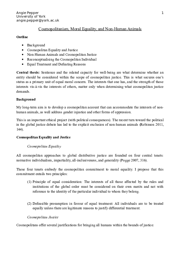 Through the Framework Directive on Employment the EU. This paper attempts to identify a principle of equal treatment that gives specific structure to our widely shared judgments about the circumstances in which we have moral reason to object to the differential adverse treatment of others. This is an important right conferred by EU citizenship.