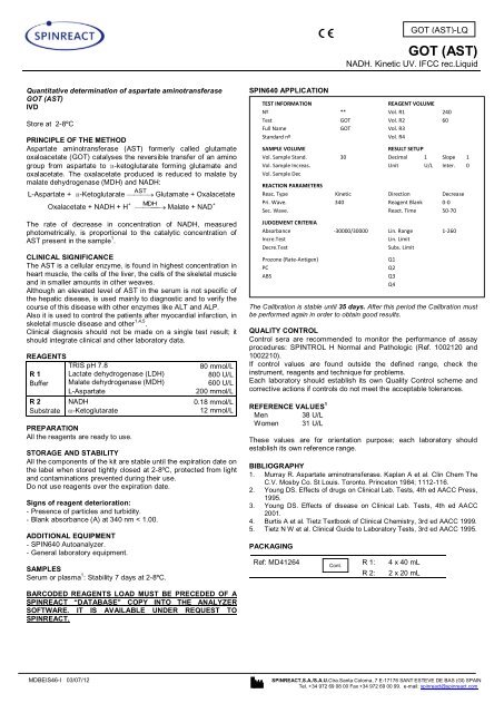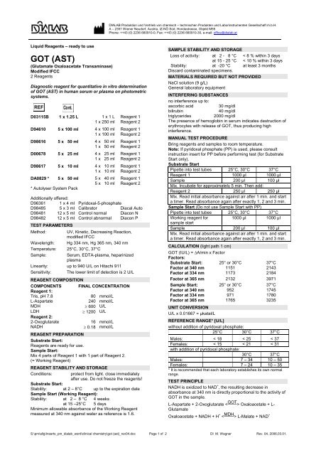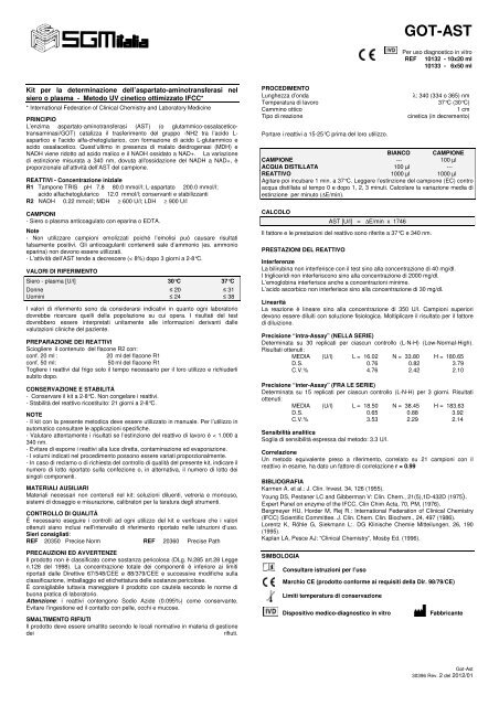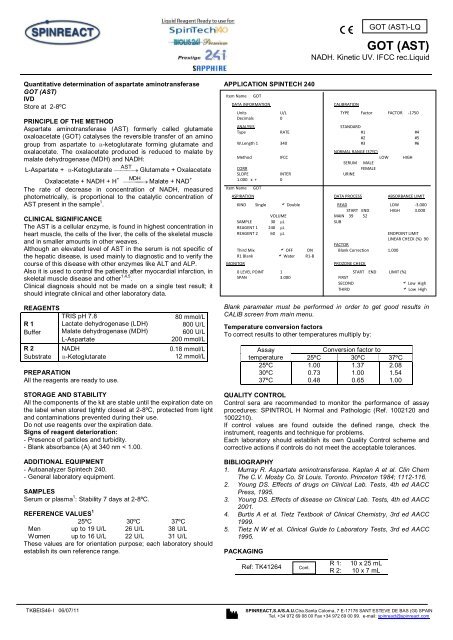 Aspartate Aminotransferase AST GOT Serum Skip to. AST aspartato transaminasi. Verificare se ci sono danni nel fegato.