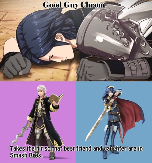 Smashbros fire emblem Ultimate chrom robin. The Fire Emblem series is well known for its innovation and for being one of the first Eastern style tactical role-playing games with a strong emphasis on Western forms of medieval folklore. I think you have a negative history with with Awakening. Donc le thème du Fanzine est jeux vidéo et bien évidemment Fire Emblem dans mon coeur ahah. The games in general revolve around a lord who forms a small army of soldiers to protect the main continent from an aggressive nation. Marth Chrom Lucina et Alm. Getting Out For a Change. Fire Emblem Awakening almost almost made it seem like it was playing with this meme to hell and back both Marth and Roy along with every other Fire Emblem protagonist are available and playable as SpotPass or DLC units. He is also the father of Lucina a direct descendant of the First Exalt and a distant descendant of Marth the Hero King.